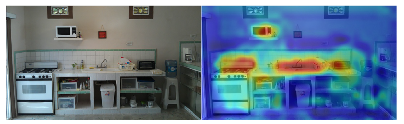 When searching for a microwave, you attend to stoves and sinks — objects that signal where a microwave is likely to be